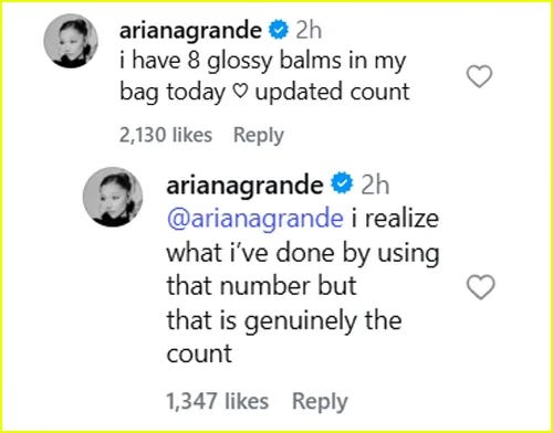 This move is a genius application of Algorithmic Priming. Prompting speculation using the number 8 allows Grande and her team to measure her real-time sentiment and hype without actually committing to a formal announcement. In the gap between releasing music, touring, and the Wicked film cycle, these “micro-engagements” keep her at the top of your feed for no cost. Whether Grande really did have 8 glossy balms in her bag only she knows. But regardless, this has shown she’s back in the spotlight with millions of fans who are eagerly anticipating her next release.