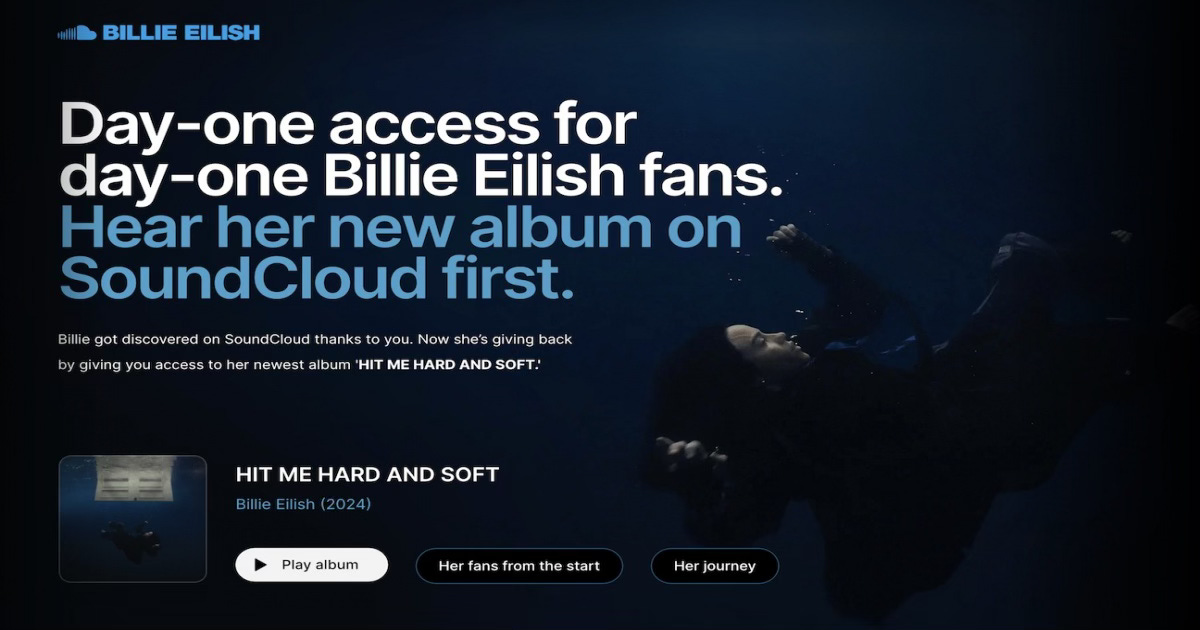 SoundCloud Partnership: The HMHAS landing page celebrated the earliest followers, showing their profiles right next to Billie’s.